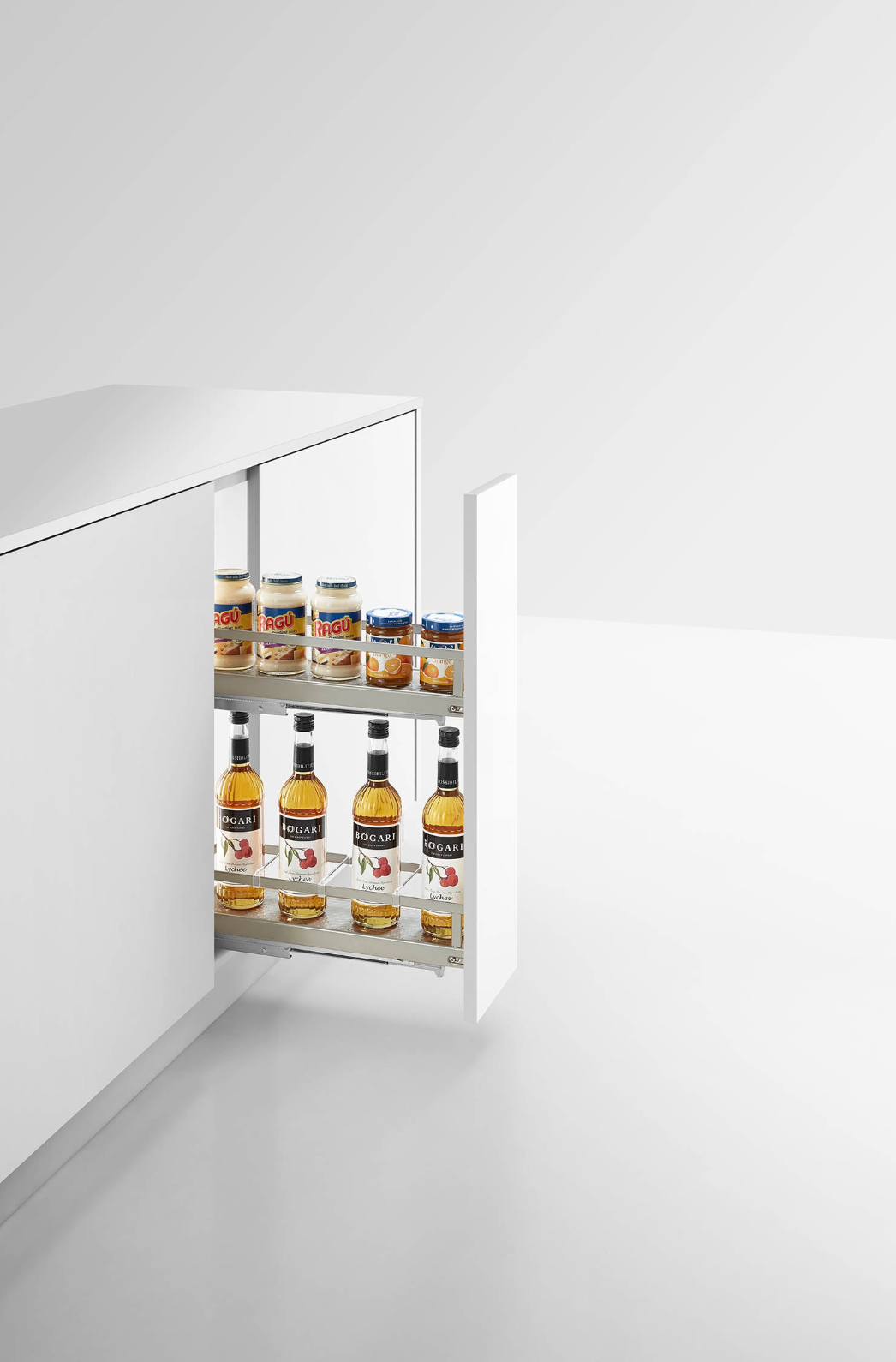 Standard with German soft-close slide, works smoothly and steady, silent and auto-close. Easily amounted with cabinet door, convenient for installation. Super wide flat wire, with water drop plastic tray, easily cleaning.